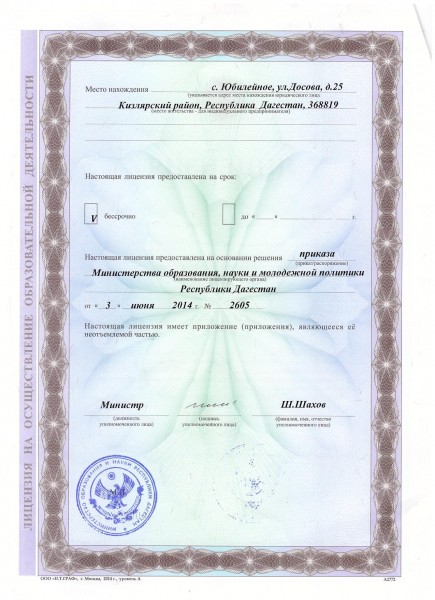 | Адрес местонахождения образовательной организации* | 369819 Республика Дагестан ,Кизлярский район, с.Юбилейное ул.Досова 25 |