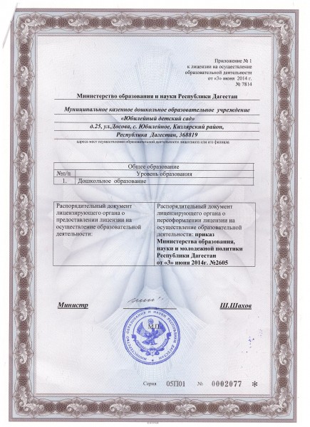 МКДОУ " Юбилейный детский сад" Кизлярский район с.Юбилейное ул.Досова 25